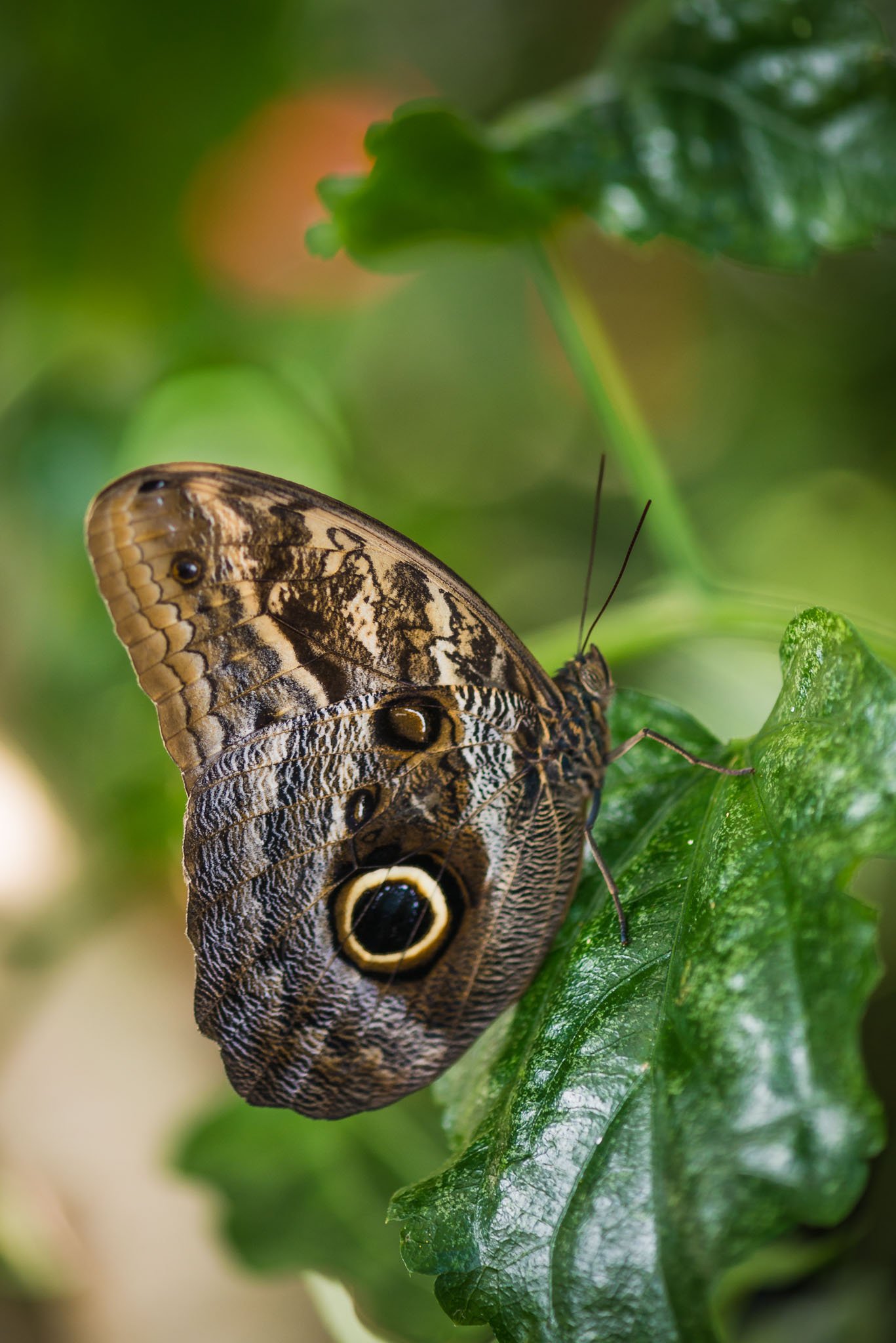 The Olympia Camera Club takes a field trip each month. When winter comes, it’s a bit difficult to take trips that involve outside photography, so this month we took a trip to Seattle to the Butterfly House at the Seattle Science Center. Chasing butterflies around the hothouse wasn’t too difficult as there were plenty just sitting on flowers or leaves. What I found to be difficult was getting enough depth of field to get the complete butterfly in focus. I took my 105mm f/2.8 macro lens but really was not able to shoot at f/2.8 due to the fact that the butterflies are generally not on a flat plane to the camera. Even at f/7.1 I was still frustrated. I think the solution is to take a flash unit and shoot a high shutter speed and also about f/16 to get the complete insect in focus. A flash will also allow me to keep my ISO down low to help retain detail. As it was I was shooting up ro ISO 1600 with my D800e. I was also wishing that I had had my 70-200mm f/2.8 so I could stand back more from the butterflies and still get close-up shots. I’m really looking forward to doing this again. Practice makes perfect – well close, anyway.