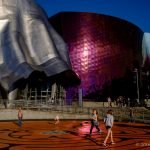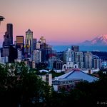 On July 23, 2016 there was a World Wide Fuji Photo Walk sponsored by the Fuji Love online community. A friend here in Olympia, who also shoots Fuji, and I headed up to Seattle to join an organized group for an afternoon shoot around the Seattle Center and also a sunset at Kerry Park on Queen Anne Hill.  We spent time working the lines and reflective light of the very unusual Experience Music Project building, the Space Needle and the Fountain.  The first time I visited those last two was back in 1962 during the Seattle Worlds Fair.  It’s still fun all these years later to walk the grounds to photograph the structures and the people enjoying the Center.