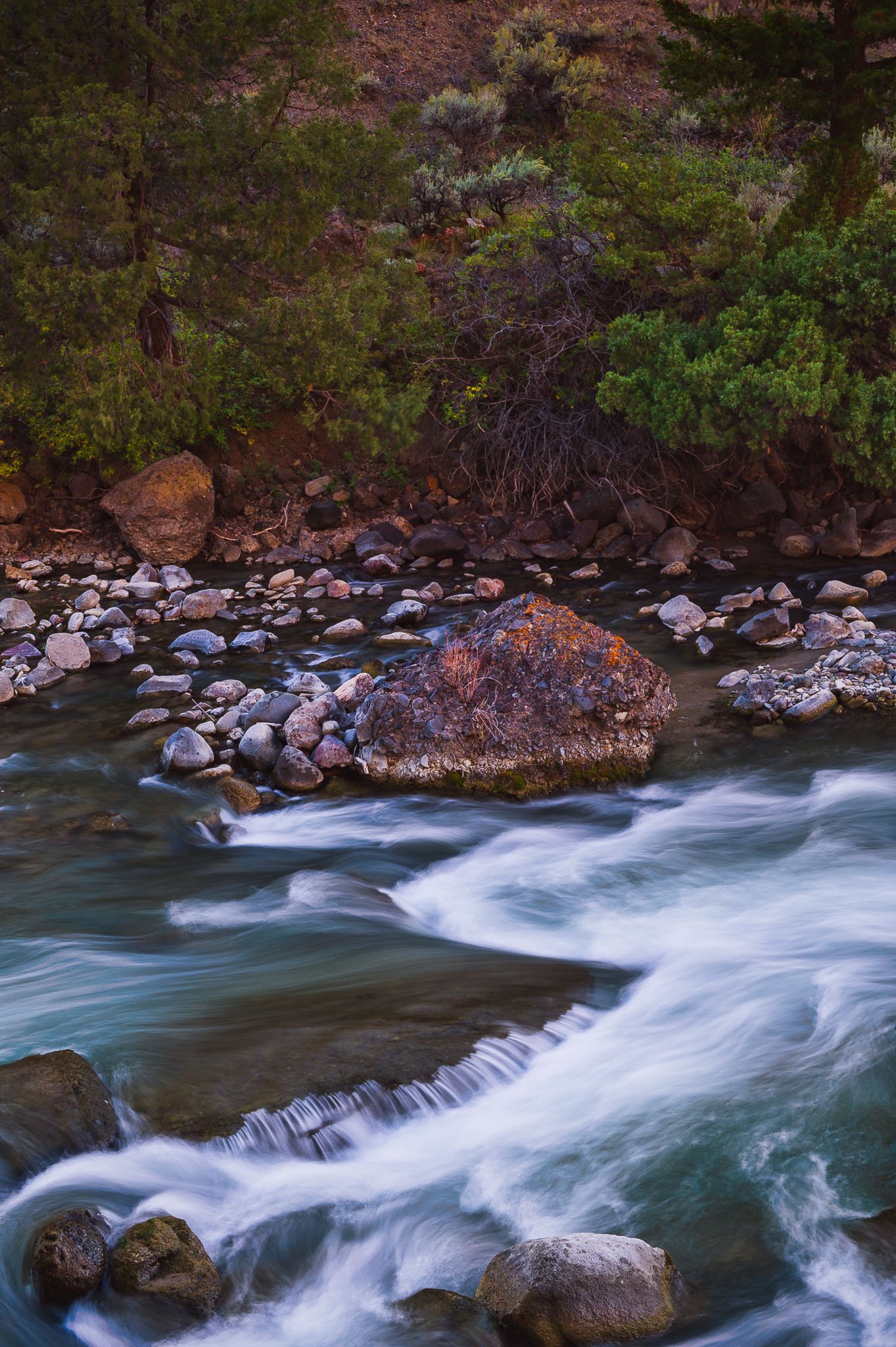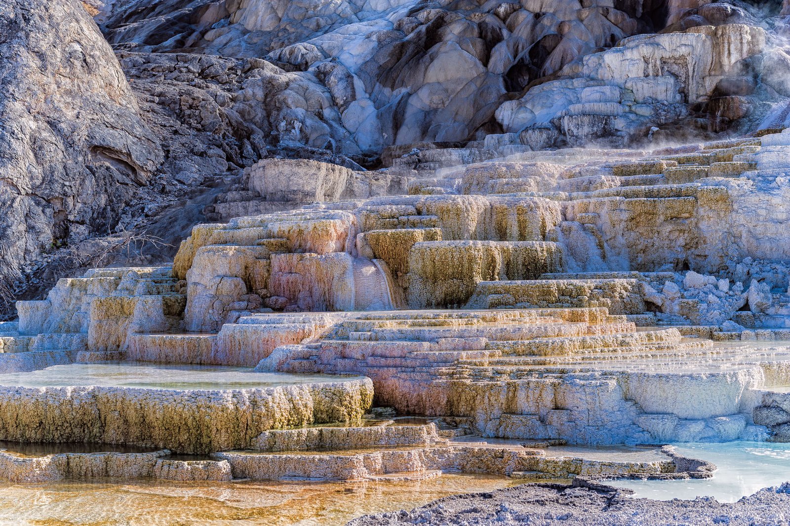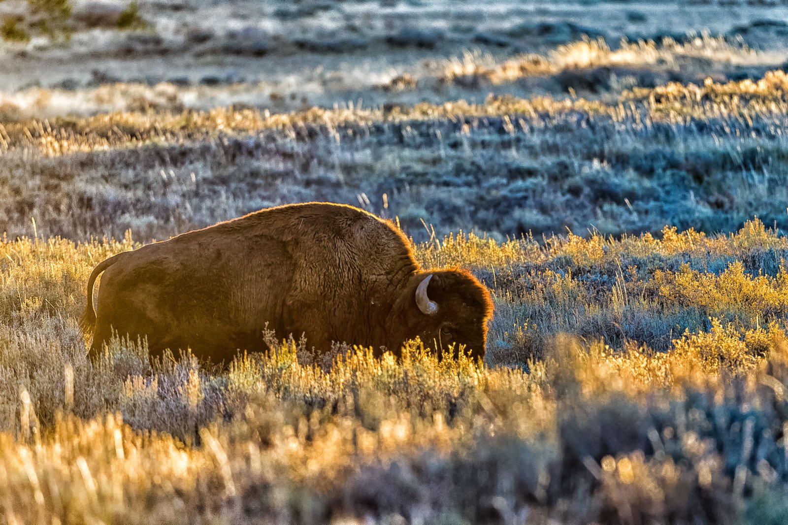 I traveled alone in our 1989 Volkswagen Syncro Westfalia camper van.  After spending a night in Colfax, WA at the home of friends, I headed for Gardiner, MT where I spent the night in a rest area a few miles outside of town.  The next morning I was up early and into the park before dawn.  My routing the first day was Gardiner, Norris, Canyon Village, Tower, Lamar Valley and back to Gardiner.  I stayed in Gardiner that night.  The second day my route was Gardiner, Mammoth Hot Springs, Norris, Madison, West Yellowstone and then I stayed the night in the campground at Madison.  I had planned to spend the next day touring Old Faithful, West Thumb and Fishing Bridge, but since the forecast was for lots of snow overnight, I headed south through Old Faithful, West Thumb, and south to the Tetons.  It would not have been good to get stuck in Yellowstone with road closures and miss my tour!  Getting to the Tetons early worked out well as it allowed me time to explore a bit on my own and also get a much needed shower at the rec. center in Jackson.